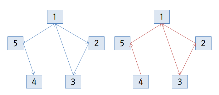 위의 그래프에서 1, 2, 3번 노드는 각각 서로의 노드로 갈 수 있는 노드가 모두 존재합니다. 예를 들어, 1번 노드에서 3번 노드로 가는 경로가 존재하고, 3번 노드에서 1번 노드로 가는 경로도 존재하죠. 하지만 4번과 5번의 경우, 1, 2, 3번 노드로부터 갈 수는 있으나 4 또는 5번 노드에서 1, 2, 3번 노드로 향하는 경로는 존재하지 않습니다.