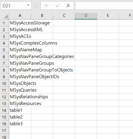 VBA를 이용해 개발을 하다보면 Access DB 내에 있는 모든 테이블의 이름을 List로 출력해주어야 할 일이 종종 있습니다.