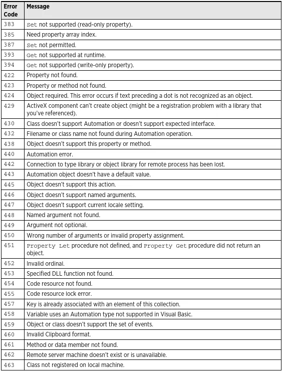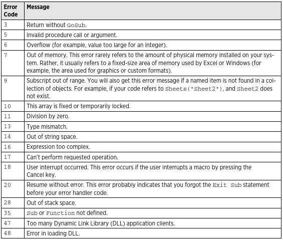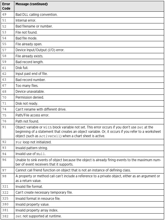 MsgBox "Error Code " & Err & ": " & Error(Err.Number)