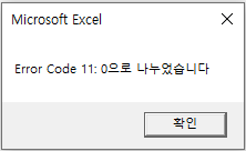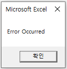 위의 코드를 실행해보면 10을 0으로 나누는 구문에서 Error가 발생했기 때문에 GoTo 옆에 명시된 ErrorHandler Section으로 Jump 하게 되고, "Error is Occured"라는 메시지가 출력됩니다.