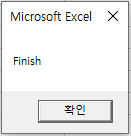 Error는 발생했겠지만, 해당 구문을 뛰어넘어 Finish를 출력하는 MsgBox를 띄워주게 됩니다.