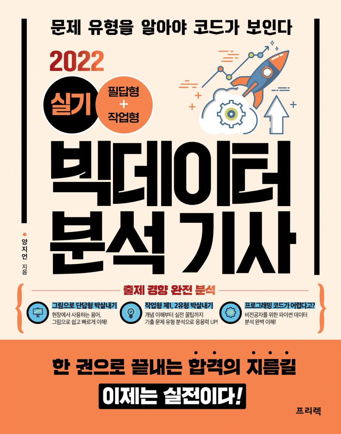 우선 교재는 프리렉이라는 출판사에서 나온 빅데이터 분석기사 실기 책을 사용하였습니다. 작업형은 파이썬을 사용하고, 책을 이 책 하나밖에 보지 않았기 때문에 다른 교재와의 비교는 어렵겠네요.