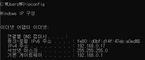 우리가 사용하는 컴퓨터도 인터넷에 진입하기 위해 여러 게이트웨이를 거쳐야 합니다. cmd 창에 ipconfig를 검색해보면 기본 게이트웨이의 ip 주소를 얻을 수 있습니다. 저는 공유기를 사용하기 때문에, 게이트웨이의 ip 주소는 제가 사용하고 있는 공유기의 ip 주소일 것입니다. 즉 인터넷과 저의 컴퓨터를 연결하기 위해 가장 먼저 거치는 게이트웨이가 바로 공유기라는 것을 알 수 있습니다.