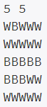 첫째 줄에는 전쟁터의 가로 크기 N, 세로 크기 M(1 ≤ N, M ≤ 100)이 주어진다. 그 다음 두 번째 줄에서 M+1번째 줄에는 각각 (X, Y)에 있는 병사들의 옷색이 띄어쓰기 없이 주어진다. 모든 자리에는